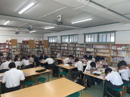 写真は図書室の様子ですが、部活動や教科でも教室を使って学習会を行っていました。