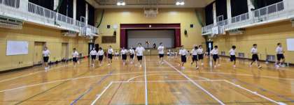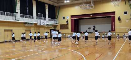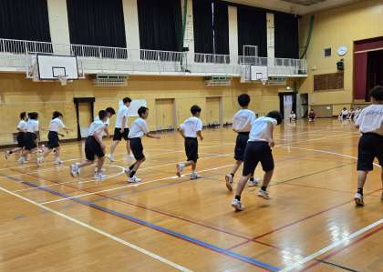 1年生の体育は、20mシャトルランです。記録を伸ばすための練習方法を取り入れ、自己ベストの更新に繋げてくださいね。担任の先生も参加され、楽しそうでした。