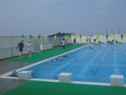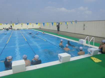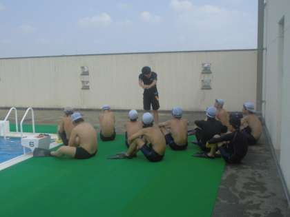 それぞれ分かれて練習をしています。平泳ぎの手の動きを確認しています。