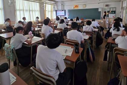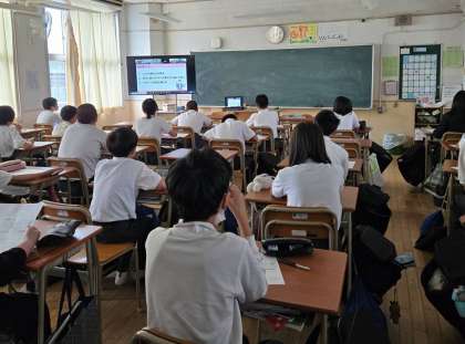 NTTドコモの協力のもとオンラインを使用し、上手な情報活用とリスクについて考えていました。