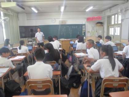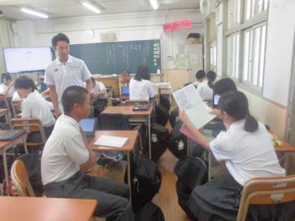 学級でお互いの短歌を鑑賞し、他の人のどういったところが良かったかを話し合っています。