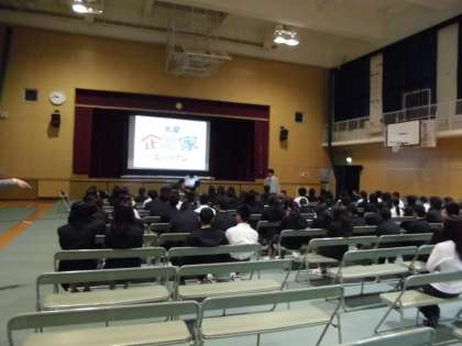 11月5日、第5回目の土曜授業を行いました。1年は企業家ミュージアムから、2年は生命保険文化センターから講師の先生をお招きして体育館、格技室でお話をうかがいました。3年は大阪商業大学高校(理科・英語)、興国高校(英語・IT)、城南学園(日本史)、枚岡樟風高校(農業)の4校の先生方から6つの教室で授業を受けました。これらの体験を今後の進路に役立ててほしいものです。