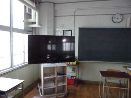 60V型のモニターを3年の教室に設置しました。今後、様々な教育活動に利用していく予定です。(1・2年の教室には市教委から支給され次第、設置していきます。今学期中に配送されます。)