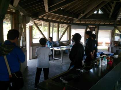 修学旅行2日目の体験活動が始まりました。写真は伝統工芸の体験です。本日も快晴です。