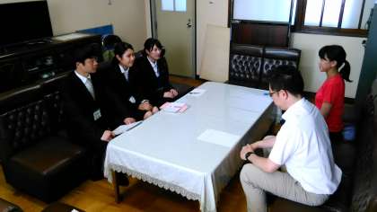 写真は反省会の様子です。左から、美術科・新井先生、英語科・大久保先生、英語科・小西先生です。手前は英語科・美術科の担当教員です。