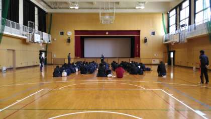 本日(2月9日)6限目に、体育館で私立高校入試事前指導を行いました。明日、明後日が入試です。