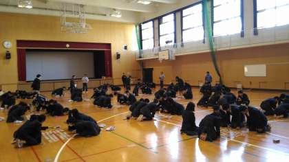 本日(2月13日)、5限目6限目に本校体育館で、第1学年百人一首大会を実施しました。元気な声が体育館に響き渡っていました。