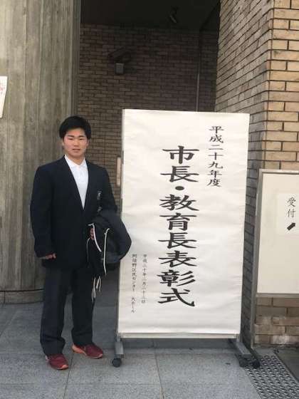 2月23日(金)、阿倍野区民センターにて、平成29年度市長表彰・教育長表彰の表彰式が行われました。本校からはラグビー部の高山碧惟君が、大阪府選抜での活躍を評価され、市長表彰状を授与されました。