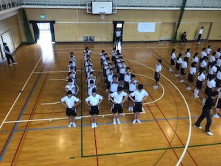 本日、6限目の総合の時間に集団行動の発表会を行いました。