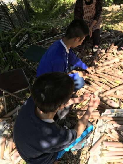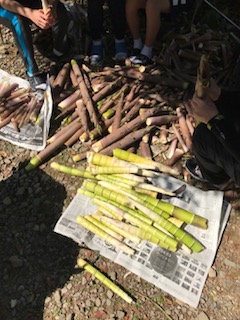 私たちが普段見ているタケノコとは違い、細い品種の真竹(またけ)です。