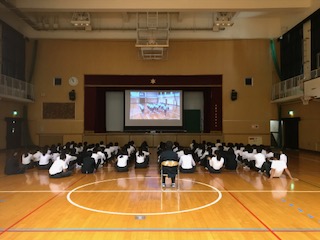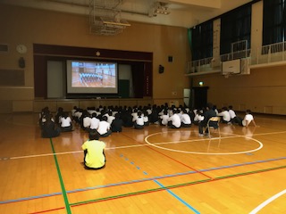 本日の4限目の総合にて先週行った集団行動発表会のビデオを学年全員で見ました。