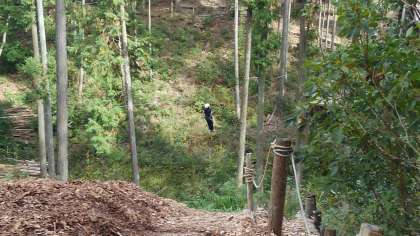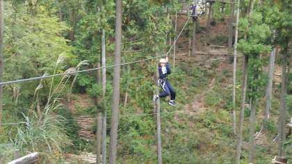 昨日、1年生の校外学習で奈良県山添村の冒険の森に行きました。