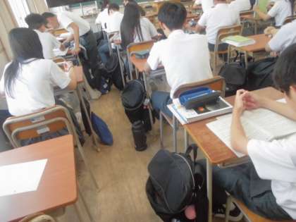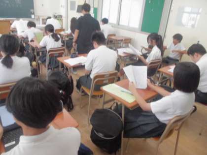 明日のチャレンジテストに向けての対策プリントをし、復習をしています。明日、がんばってください。