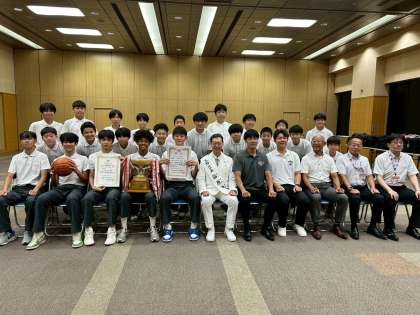 大偉業達成の男子バスケットボール部に生野区長はギターで祝福してくれました!!