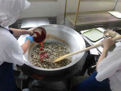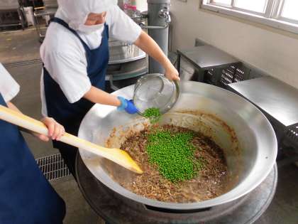 ・牛肉のデミグラスソース煮 ・ウインナーのスープ ・きゅうりのピクルス ・コッペパン ・いちごジャム ・牛乳 です。