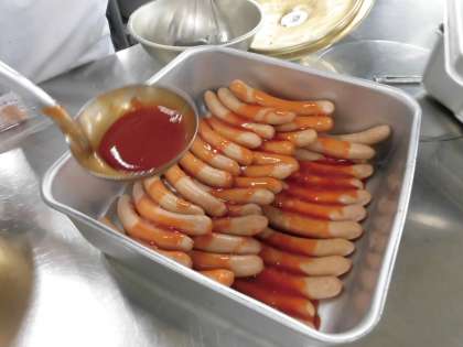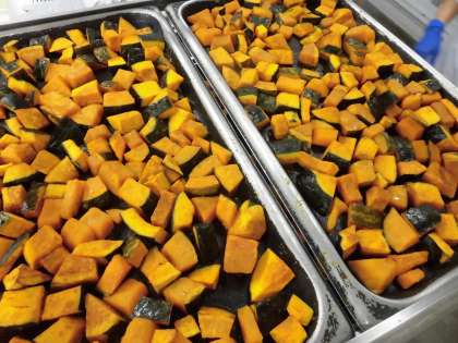 ・ウインナーのケチャップソース ・スープ ・焼きかぼちゃ ・コッペパン ・ブルーベリージャム ・牛乳 です。