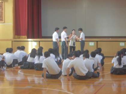 まず初めに、文化発表会の合唱コンクールの順番決めをしました。各クラスの指揮者によるくじ引きの結果、2組、1組、3組の順番になりました。