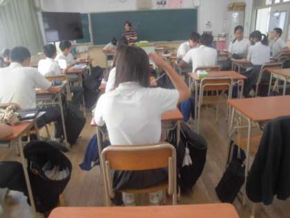 様々なグラフを見て、そのグラフがどのような式を表しているかを考え、周りの人と意見交換をしています。