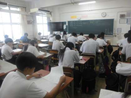 今日は中間テストの最終日です。3年生は1限国語、2限英語、3限数学です。