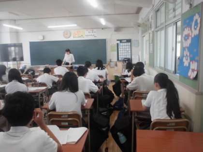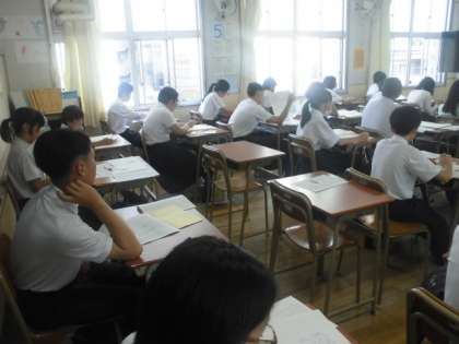 中間テストが返却されています。学年集会との話とも重なりますが、漢字でも気をつけなければならないところなどを確認しています。