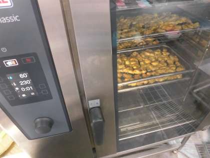 ・鶏肉のカレー風味焼き ・スープ煮 ・野菜のソテー ・おさつパン ・牛乳 です。