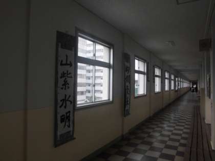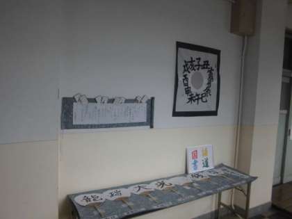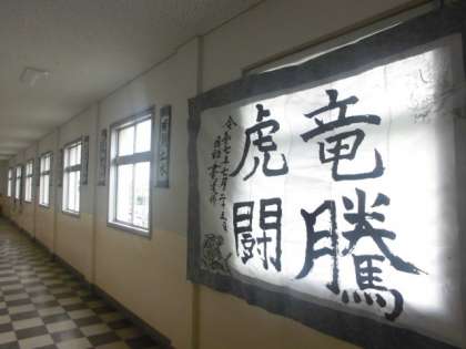 国語書道部の作品が図書室の前に飾られています。迫力のある作品に仕上がっています。