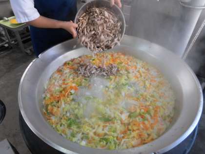 ・鶏肉のチリソース焼き ・焼き豚のスープ ・ツナとさんどまめのいためもの ・ごはん ・牛乳 です。