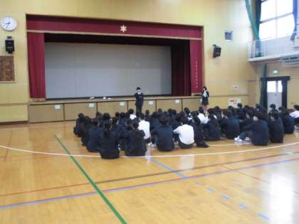 委員長トークでは、自分の部活動の経験などから、普段の生活から緊張感を持って、取り組んでいくことの大切さを話してくれました。また、明日から始まる職場体験も、そうした緊張感を持つことが、信頼や評価にもつながっていくのでがんばりましょう!との呼びかけがありました。