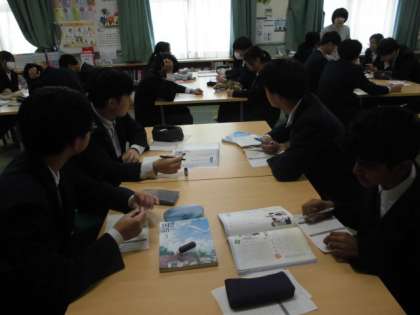 自分が今まで体験してきたことや最近の社会での出来事を振り返り、それを漢字一字で表すとどうなるかを班のメンバーとも話し合いながら、考えています。