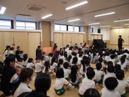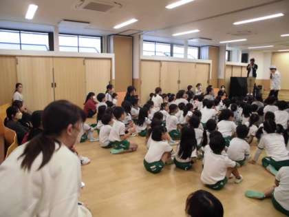 「わかば保育園」では、先生のお話を一緒に聞いて、次の園児の行動を見守っていきます。