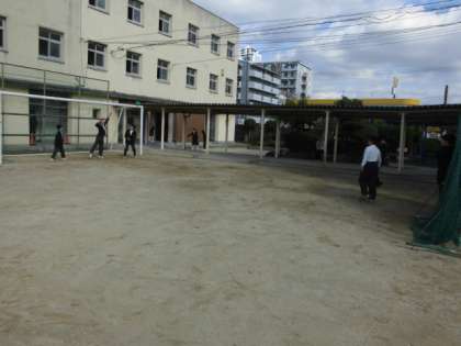 今日は肌寒く、昼までの3年生はいませんが、1,2年生が元気に体を動かしていました。