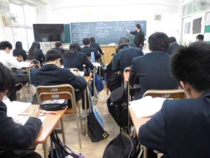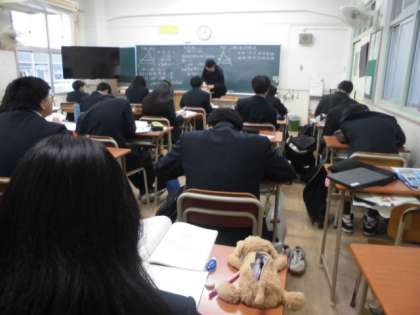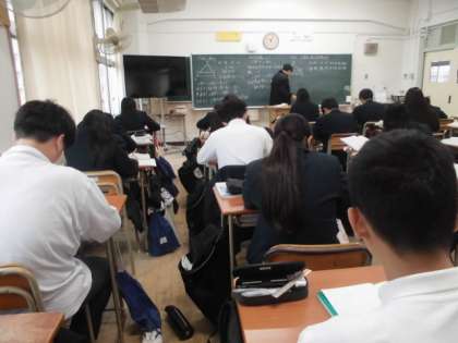 三角形の性質を利用して、比がどうなるかなど、証明問題に取り組んでいます。