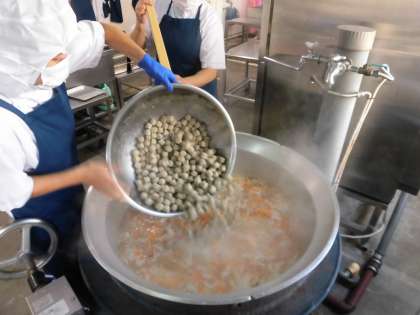 ・豚肉と野菜のいためもの ・いわしのつみれ汁 ・かぼちゃういろう ・ごはん ・牛乳 です。