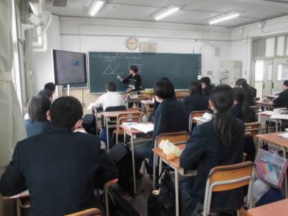 同位角や錯角が等しくなる平行線の性質を利用して、三角形の内角の和が180度になることを考えています。
