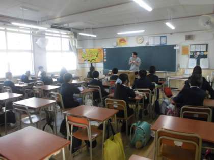 授業体験の様子です。小学生が英語と数学の授業を受けています。