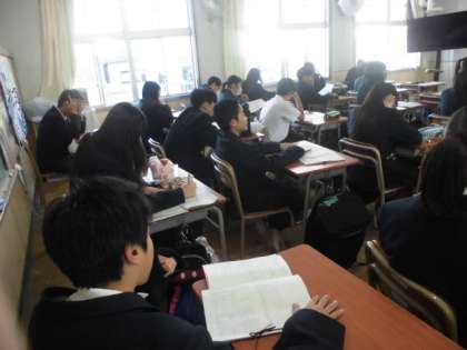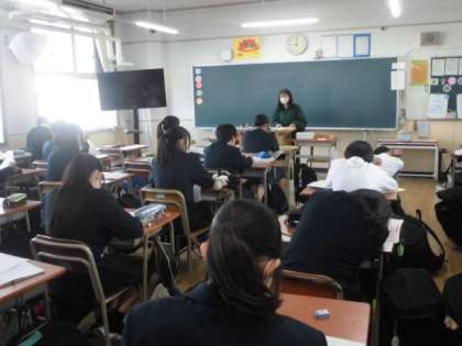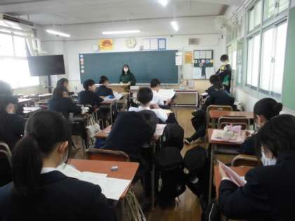 期末テストが返却されています。できなかったところをしっかりと復習しておきましょう。