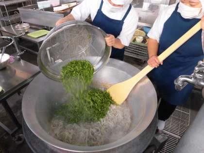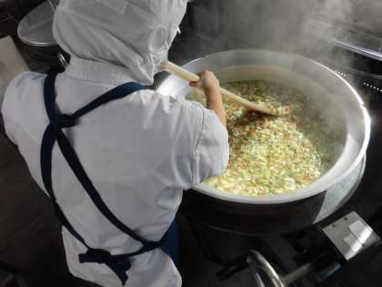・豚肉と野菜のソテー ・スープ ・スイートポテト ・黒糖パン ・牛乳 です。
