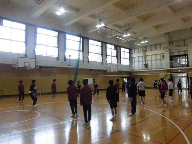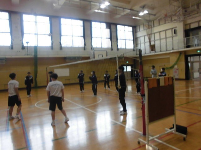 今日は男子対女子でバレーボールの対決をしています。女子チームには、助っ人で先生が入っています。どっちが勝つかな?
