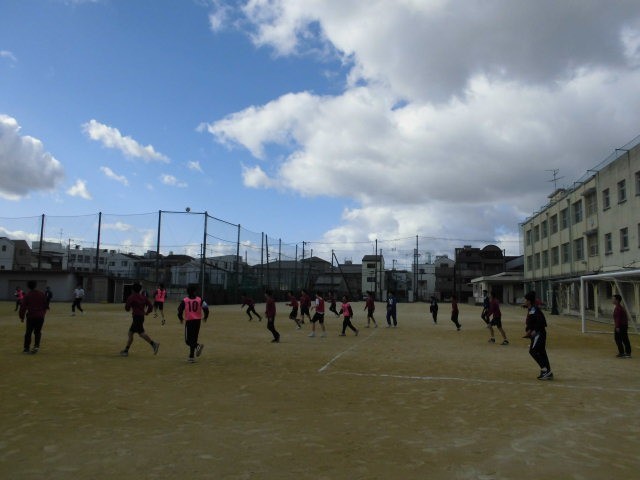 今日はかなり冷えますがグランドでは男子がサッカーをしていました。