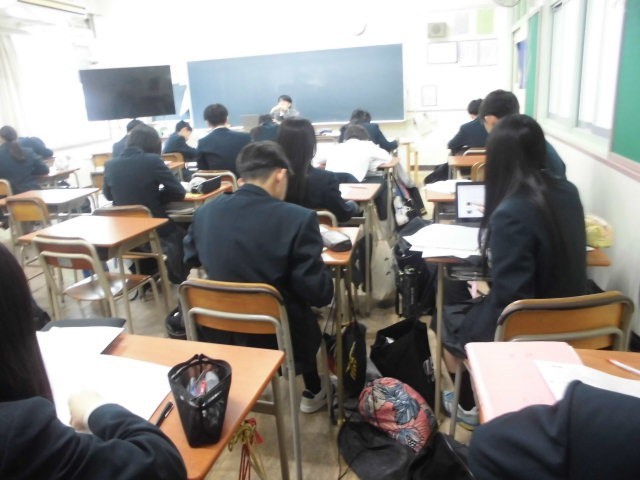 今日は入試に向けての対策プリントなど、自分で考えて、それぞれの課題に取り組んでいます。