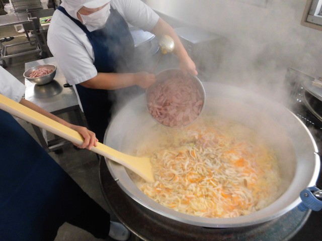 ・鶏肉のからあげ ・ハムと野菜の中華スープ ・もやしとコーンの中華あえ ・黒糖パン ・牛乳 です。