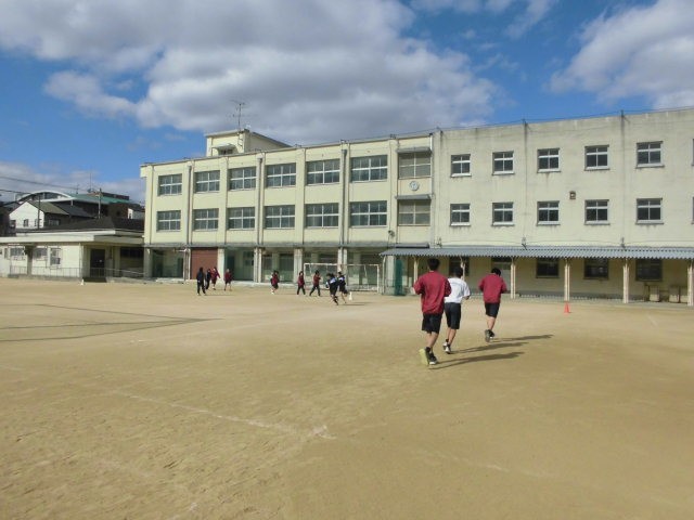 1年生も持久走が始まりました。今日は10分間走です。グループで一緒に走り、ペースを考えています。