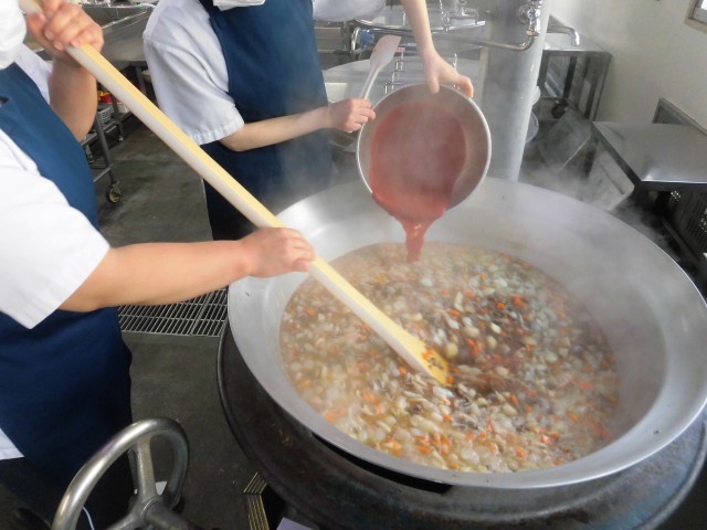 ・ハヤシライス ・きゅうりのバジル風味サラダ ・いもけんぴフィッシュ ・牛乳 です。