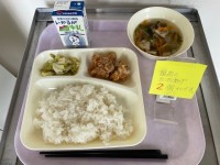 ・くじらのたつたあげ ・豚肉とじゃがいもの煮もの【大豆除去食】 ・もやしの甘酢あえ ・菜飯 ・牛乳 です。
