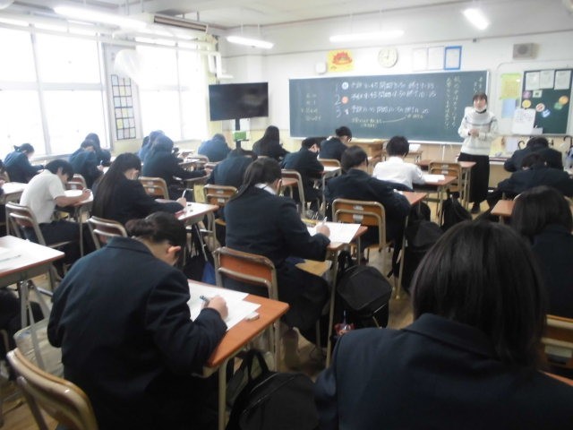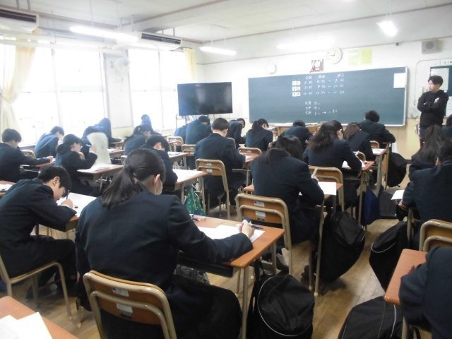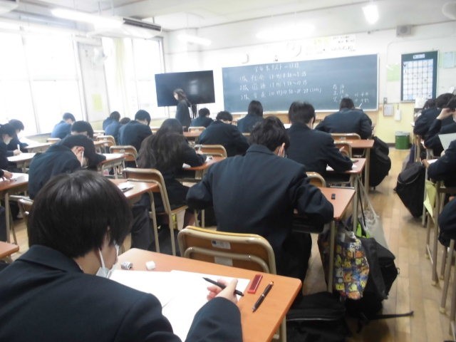 今日は学年末テストの1日目です。1年生は1限社会、2限国語、3限音楽です。