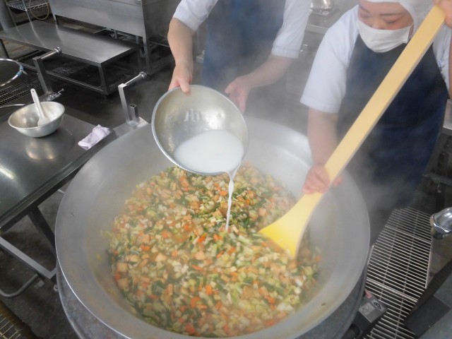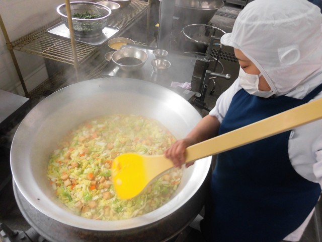 ・豚肉とれんこんのオイスターソース焼き ・鶏肉とあつあげのうま煮 ・デコポン ・黒糖パン ・牛乳 です。