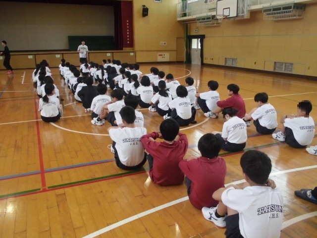 1年生が体育の授業を受けています。