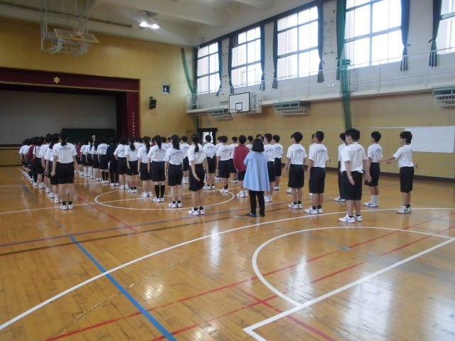 集団行動のあり方と整列方法について学んでいます。