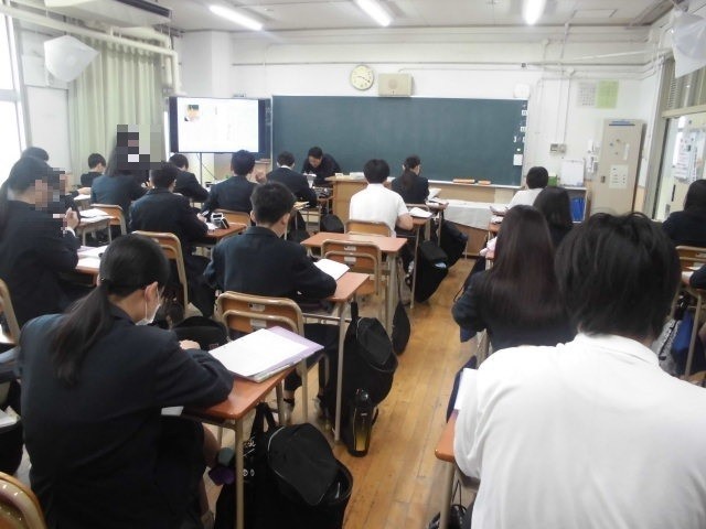 教材「握手」で、ハンドサインの意味をとらえる学習をしています。