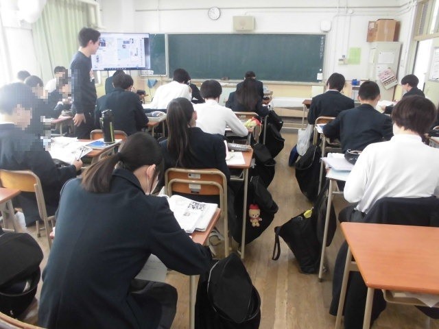 3年生は社会の授業を受けています。
